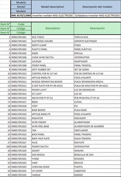 Los despieces mostrados en esta página son ilustrativos y tienen fines orientativos. La presencia de una marca o modelo en las imágenes no implica necesariamente que trabajemos directamente con dicha marca ni que contemos con todos sus repuestos disponibles. Para confirmar la disponibilidad de piezas específicas, por favor contáctanos directamente.